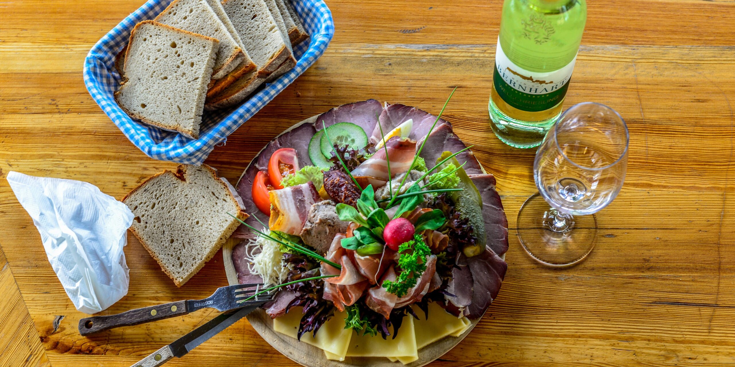 Im Anschluss an die Verkostung servieren wir Ihnen in unserem Buschenschank eine echt steirische Jause mit allem, was das Herz begehrt: